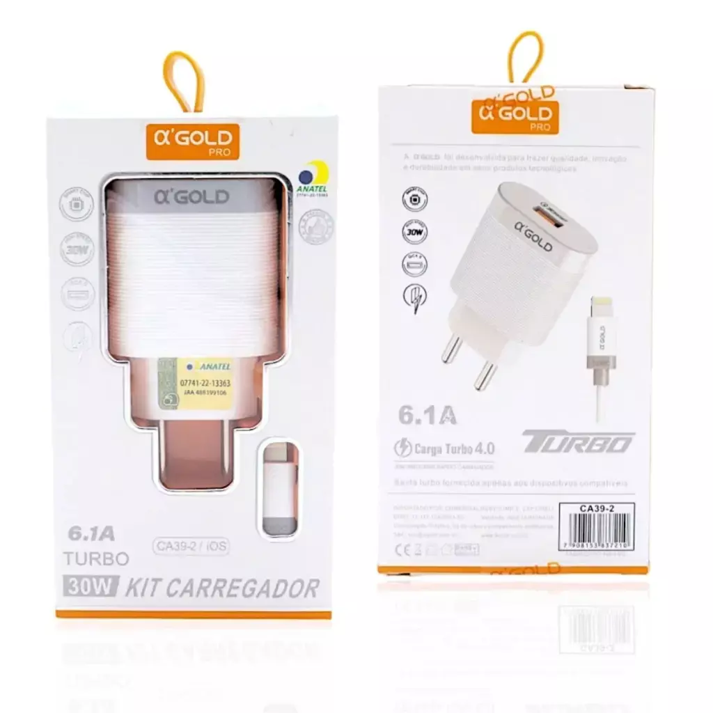 Kit Carregador Turbo 30W 6.1A com Cabo Lightning para iPhone - CA39-2 a'Gold