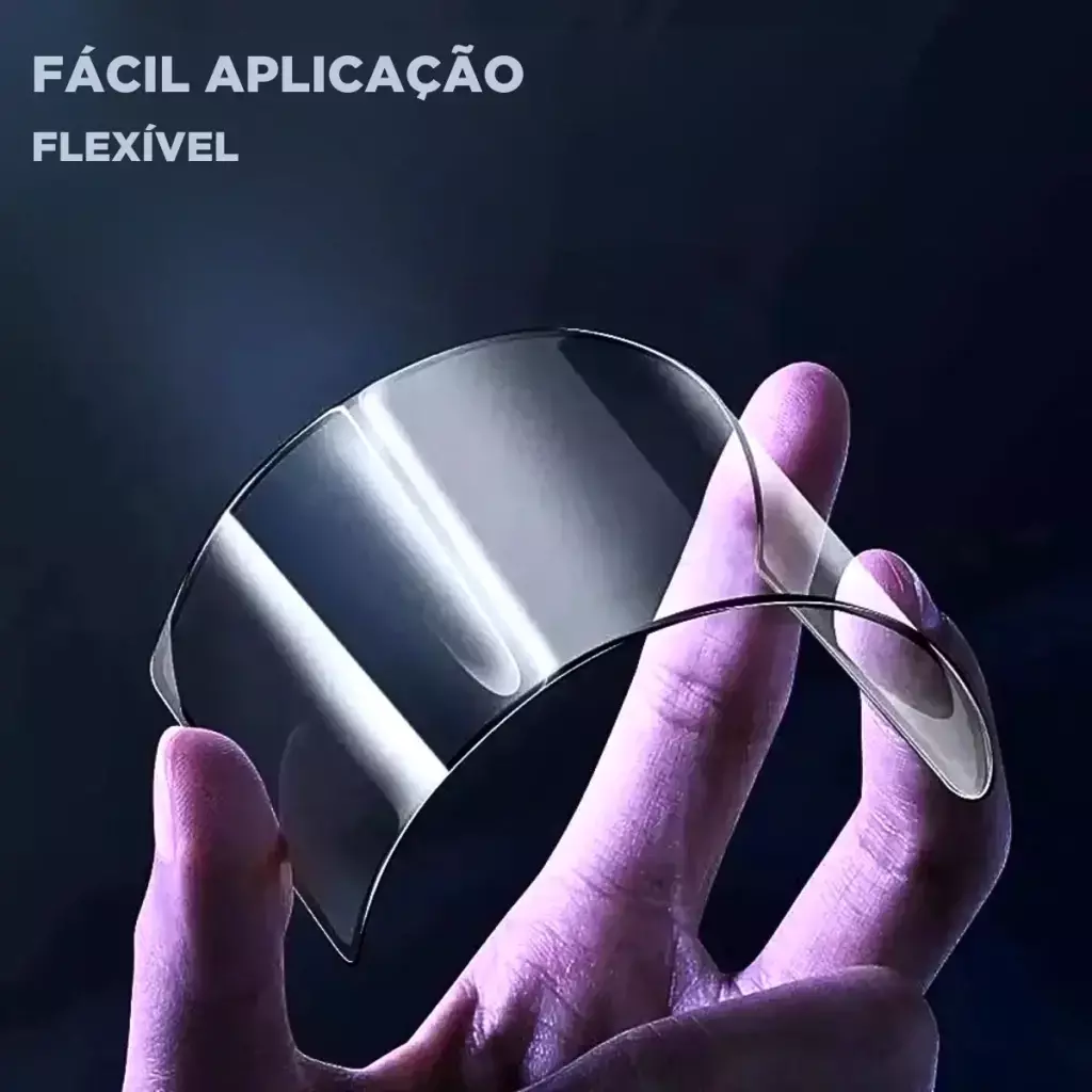Instalação fácil: A película flexível se adapta perfeitamente ao formato da tela, sendo fácil de aplicar sem bolhas.